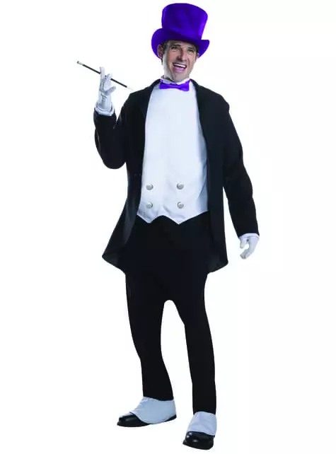 Inkluderet: jakke, slips, bukser, handsker, skjorte, hat og cigaret