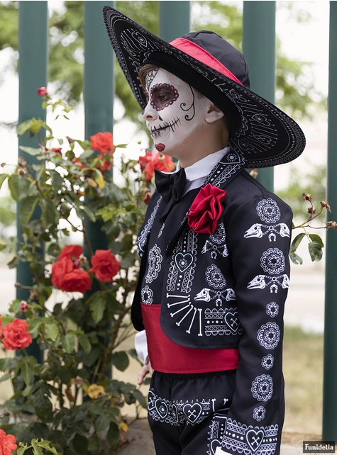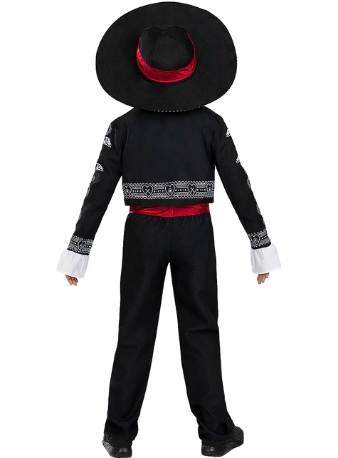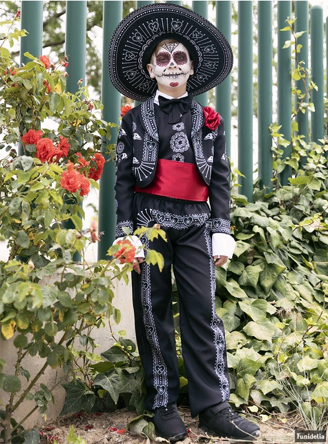 Dette elegante Mariachi kostume til drenge inkluderer en t-shirt, jakke, bukser, sjal og hat. Dette De Dødes Dag kostume til drenge er en unik Halloween kostume-idé til din lille.