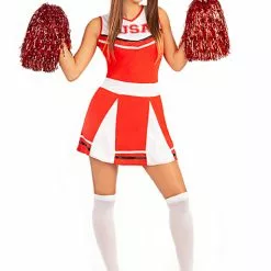 Cheerleader Kostume Rødt Skindende Til Kvinder