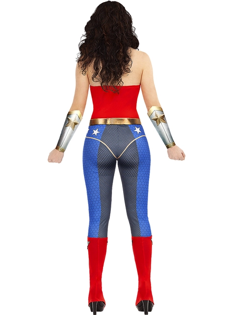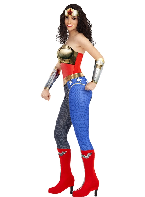 Wonder Woman Injustice kostumet er et specielt og anderledes look end normalt for denne superhelt. Wonder Woman præsenteres her med et korset og stramme bukser for bedre mobilitet, når det kommer til bekæmpelse af kriminalitet. Dette Injustice kostume består af en heldragt med fuld krop med blå bukser og et rødt korset, der er fuldendt med en guld brystplade i form af “W” – symbolet på Wonder Woman. Det inkluderer også et bælte, gyldne armbånd, røde og hvide støvledækker og naturligvis et gyldent pandebånd med en rød stjerne.