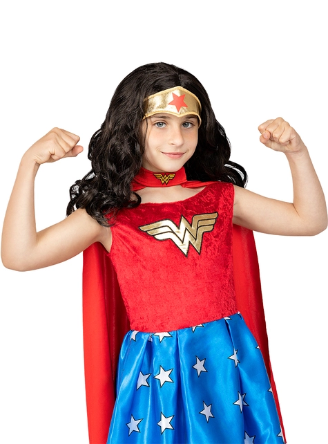 Din lille pige kan vise denne Wonder Woman paryk til piger frem til enhver udklædningsfest og blive hendes yndlingssuperhelt.